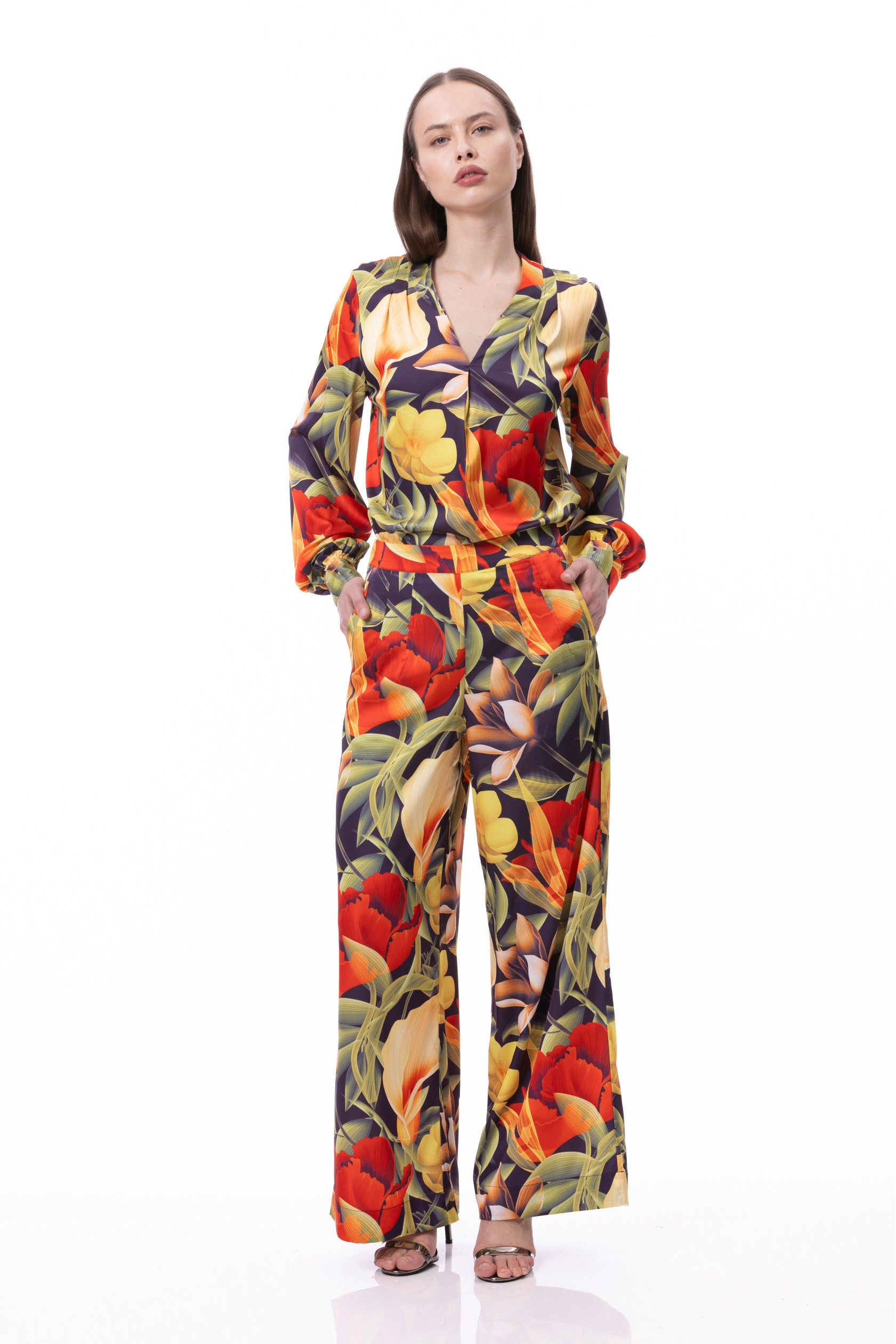 V-neck Pleat Detail Flutter Sleeve Blouse (Print)